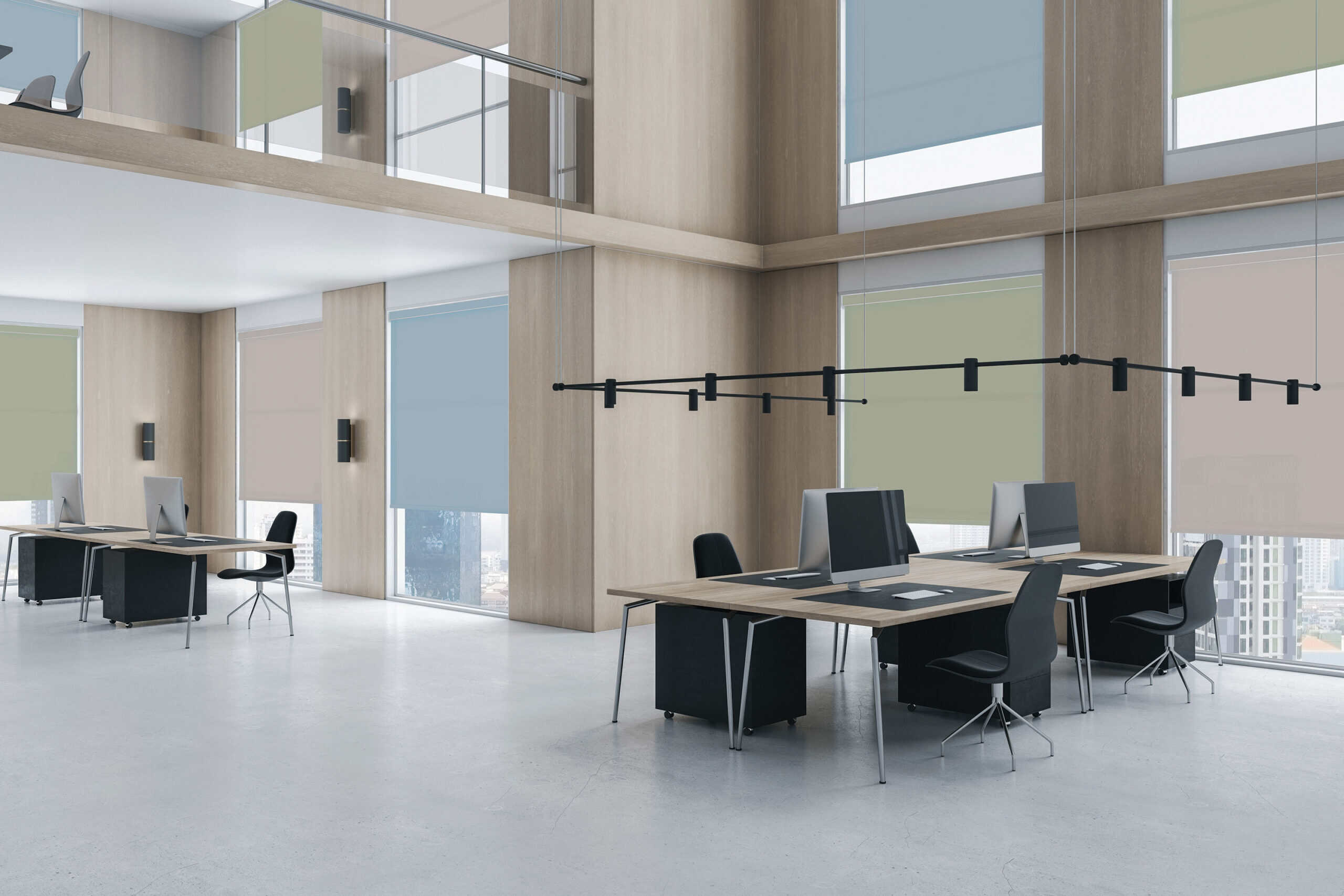 Our commercial roller blinds are made-to-measure to fit the windows in your workplace, available in a huge range of fabrics and finishes.