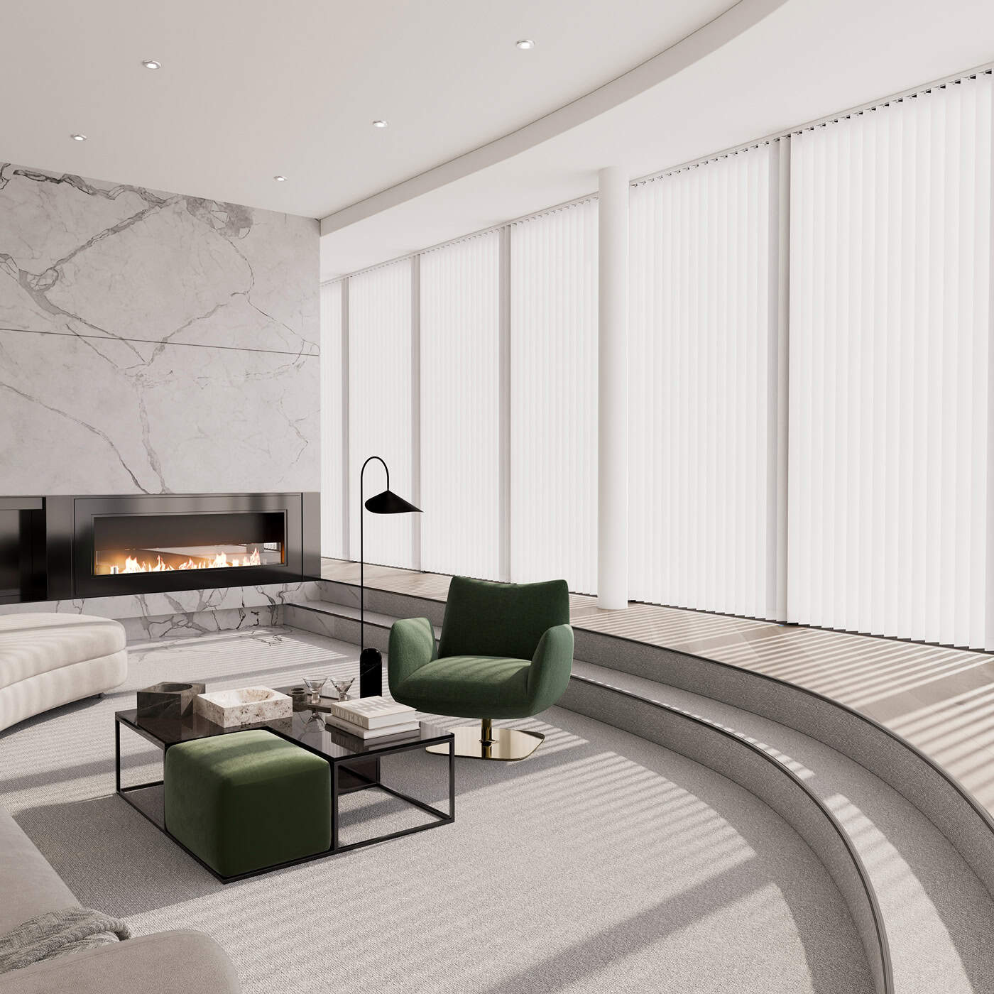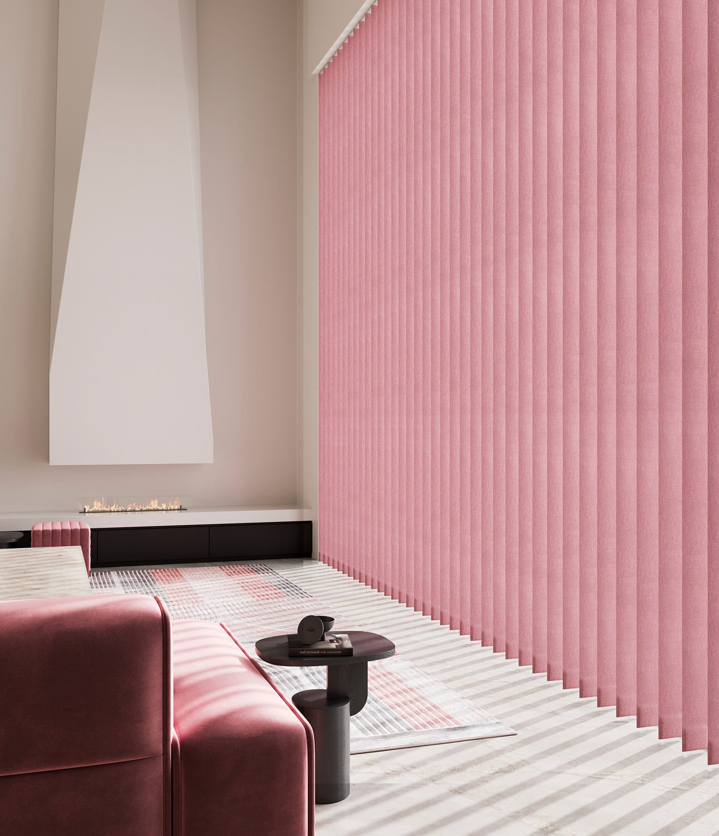 Vertical blinds provide excellent light control, privacy, and a contemporary look. They are ideal for large windows, sliding doors, and conservatories, as the vertical slats can be adjusted to filter or block sunlight