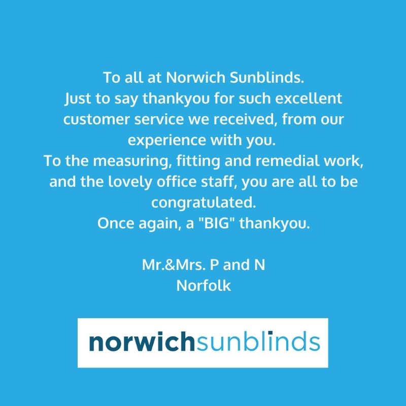 Testimonial for Norwich Sunblinds for commercial work carried out.